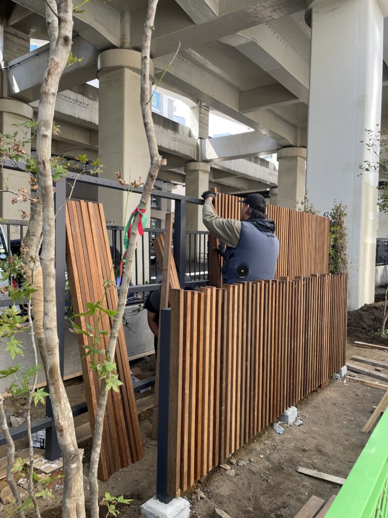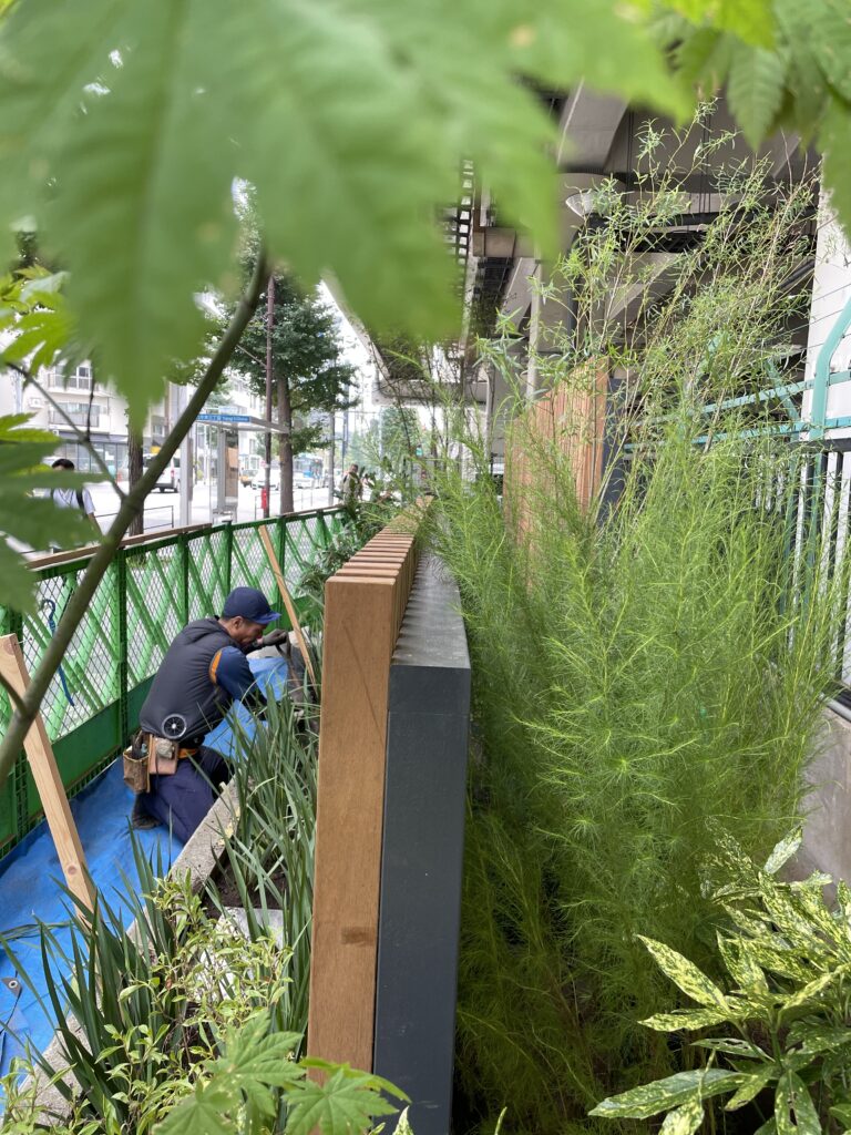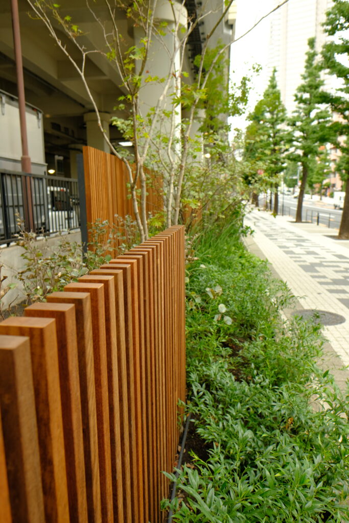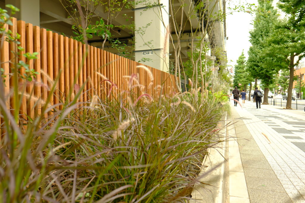 統一感のあるデザインが続き、はじめは先が長いなと感じていましたが、日々少しずつ出来上がってくると規模感と少しずつ高さや幅を変えたフェンスと多種多様な植栽の組み合わせが圧巻のシークエンス景観をつくり上げていました。