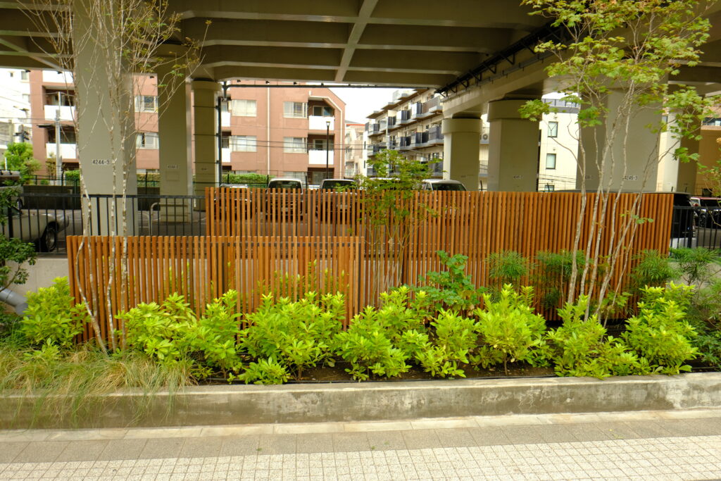 このエリアでは明治神宮鎮座100年を記念した周辺整備が行われており、その一部として首都高速道路の下にある約150mの植栽帯を改修しました。